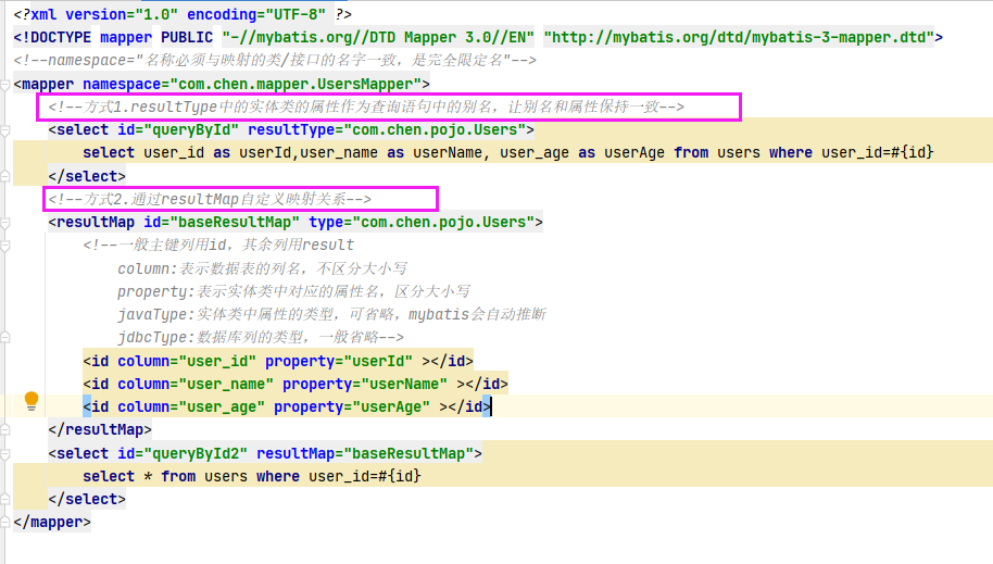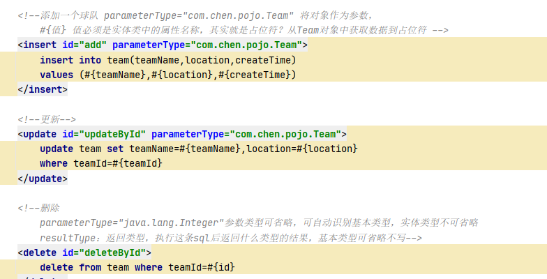 resultType:返回类型,执行这条sql后返回什么类型的结果,基本类型可省略不写,若集合则其元素类型-->