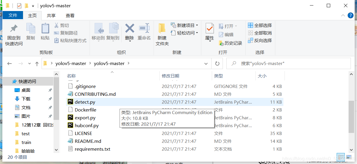 下载完yolov5后,点detect,运行