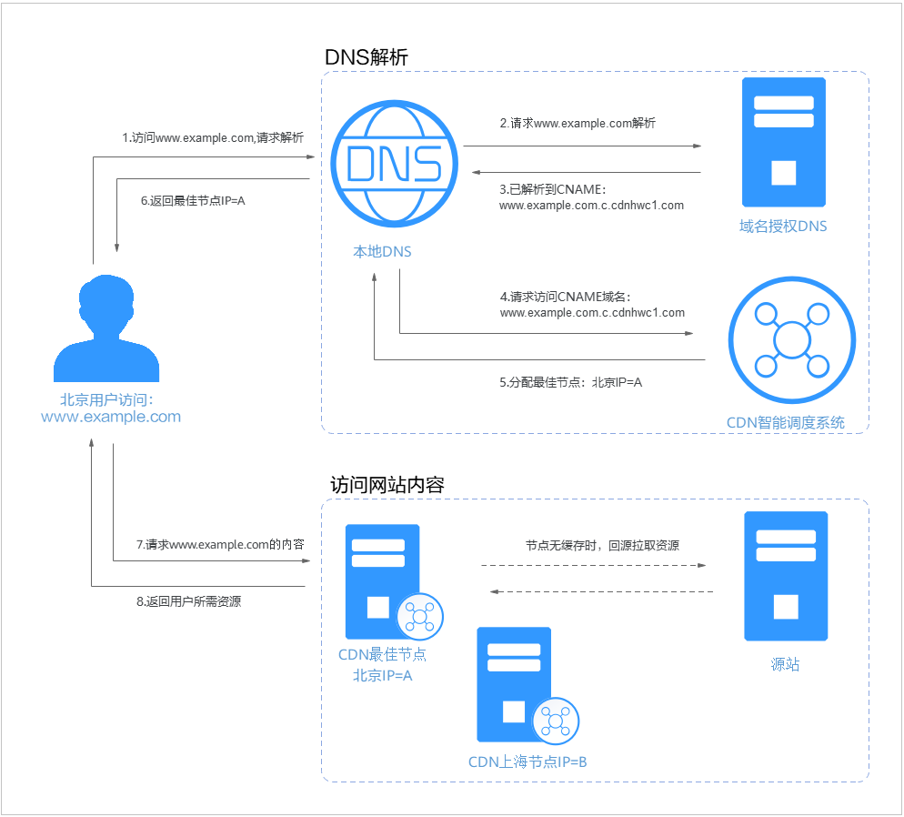 通俗地讲,华为云CDN是通过在全球范围内的CDN节点中缓存你的源站资源来实现加速服务的。当用户申请资源后,就会就近回到该节点所缓存的资源中去,让你快速获取你所需要的内容。从而有效避免了让所有用户都从源站获取资源,减少了网络拥挤,也减轻了源站的压力,确保了用户对资源的访问速度与良好的使用体验。