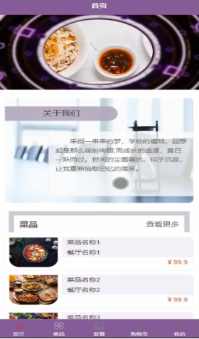 系统首页是用户注册登录后进入的第一个界面,用户可以对首页、菜品、套餐、购物车、我的等功能模块进行管理。系统首页界面如图5-2所示。