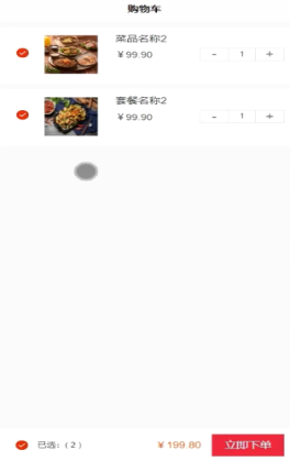 在购物页面,用户可以查看购物车里的菜品信息,并进行增减购买数量、立即下单等操作。购物车界面如图5-6所示。