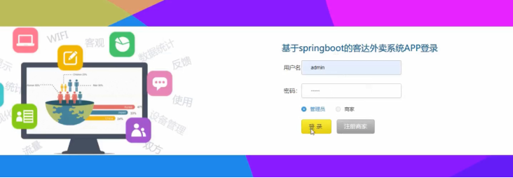后台登录:后台主要由管理员和商家进行登录、操作,管理员通过填写账号、密码、选择登录角色进行登录操作,如图5-7所示。
