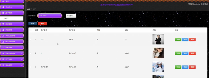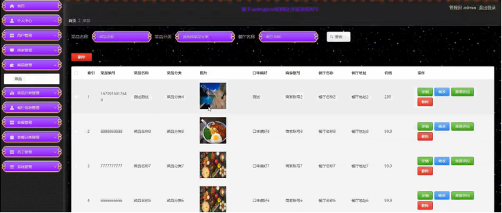 后台管理:管理员可以对用户信息、商家信息、菜品信息、订单信息等进行管理,确保平台的正常运行。