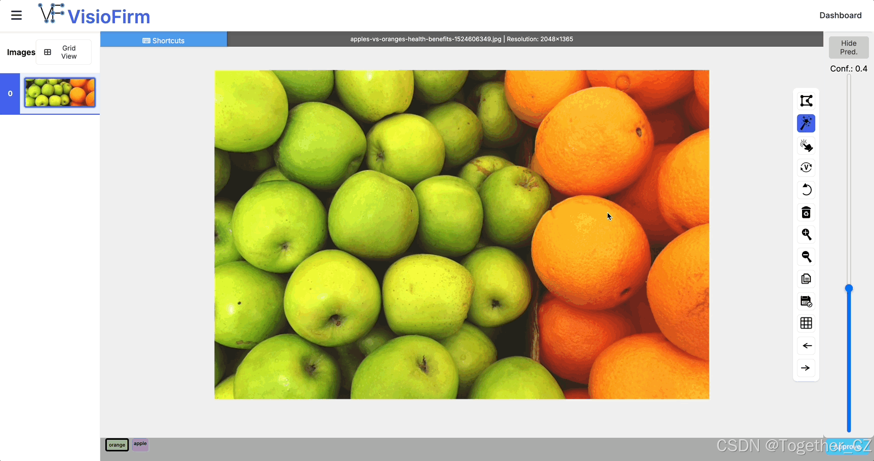 魔术模式:集成 SAM2,用于点击引导的分割,通过 WebGPU 加速,以确保在浏览器中低延迟性能。此外,标注界面还提供快捷键以便快速高效地进行标注。
