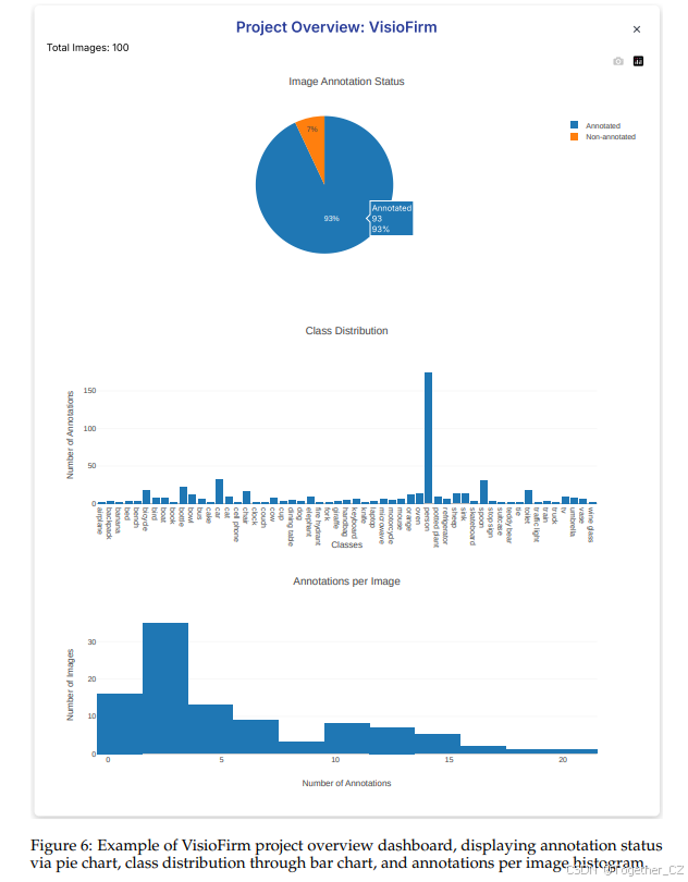 一个饼图,显示标注完成状态(例如,在 100 张图像中完成了 93% 的标注)。