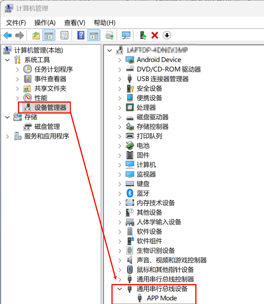 打开window计算机管理,查看USB驱动是否开启,一般会自动开启,如果没有更新一下驱动