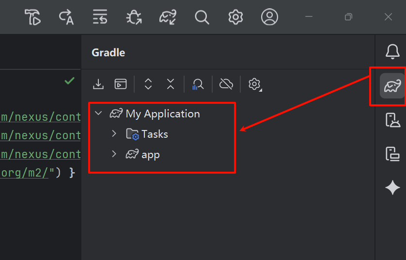 查看右侧gradle图标(小象图标),查看是否配置完成