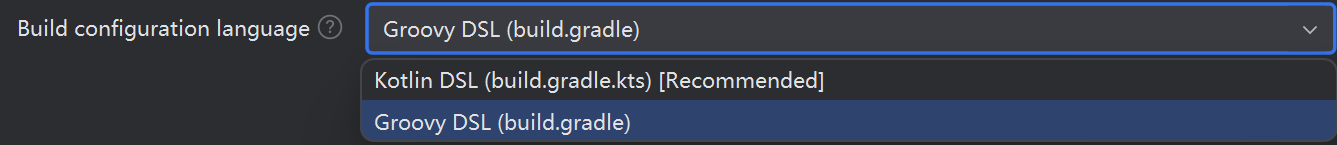 【Build configuration language】选项为构建配置语言,Java语言开发选择第二个即可