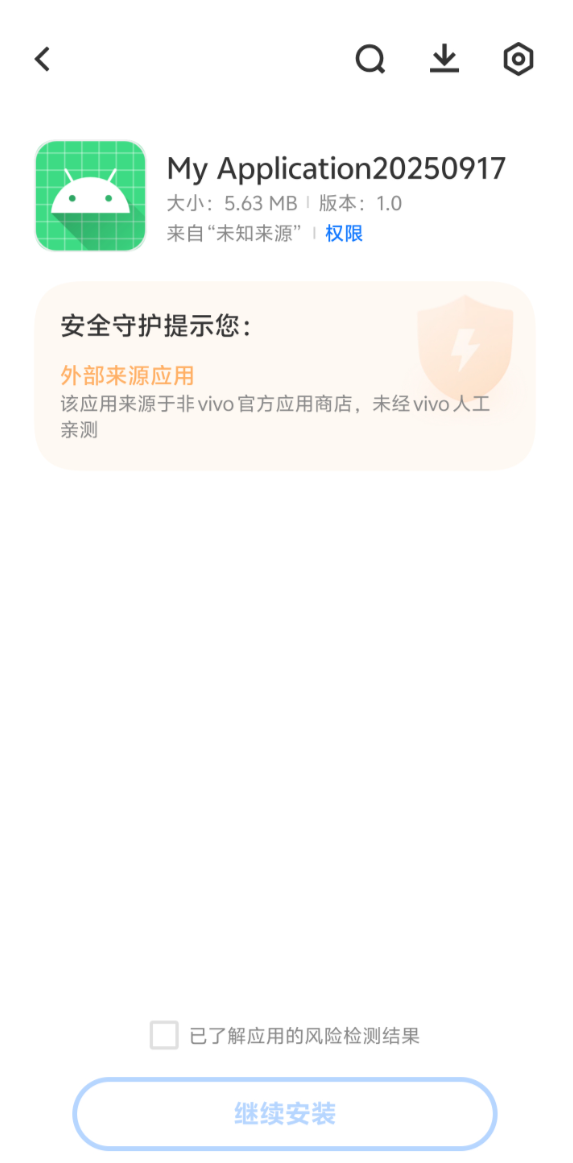 加载过程中手机上会显示本项目的安装申请,和安装手机软件一样直接安装即可,安装完成后手机会自动运行该软件,效果与虚拟机相同。(不使用后请关闭开发者模式,保护手机安全)