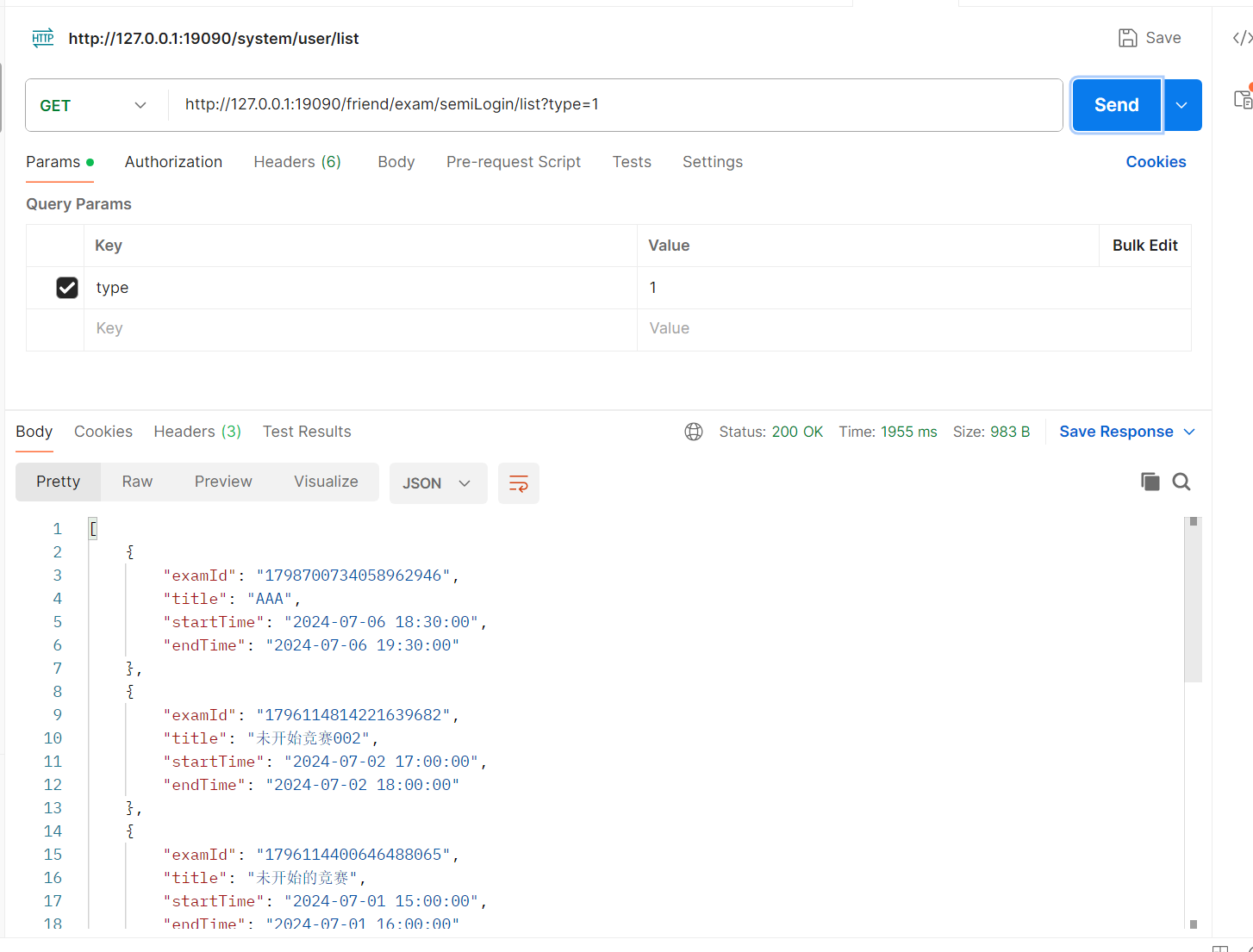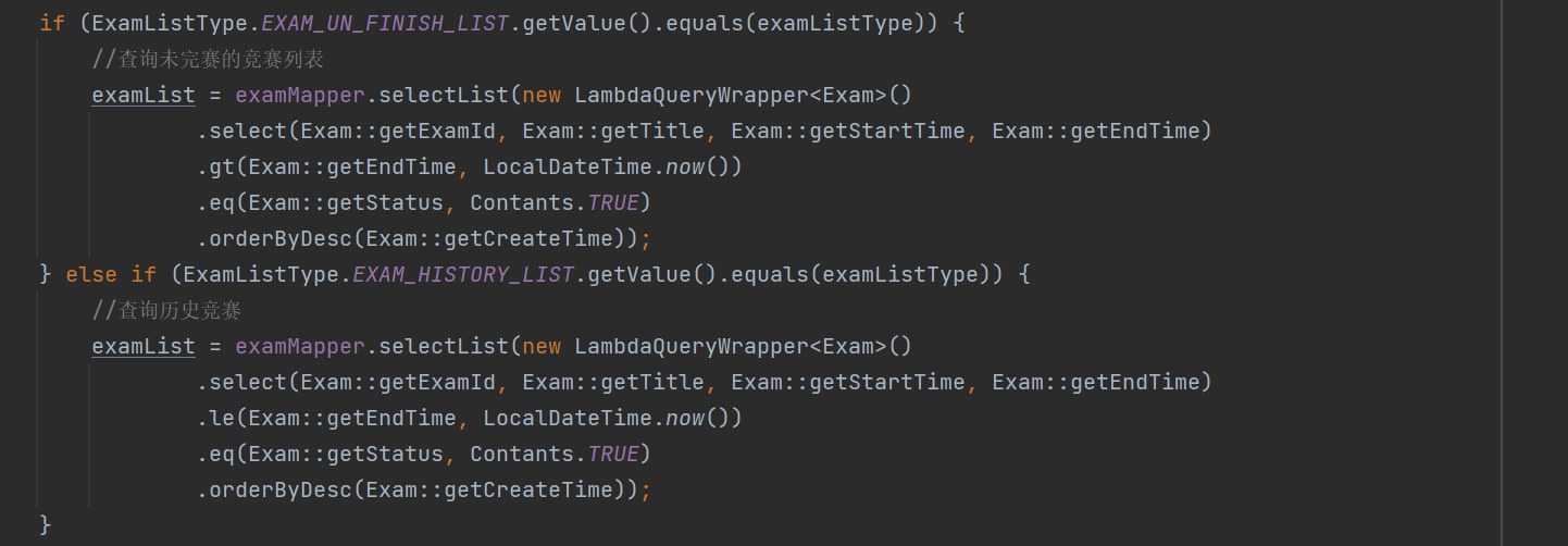 这里相比之前B端竞赛列表DTO多了一个类型type,因为我们查找的时候可能选择未完赛和历史竞赛