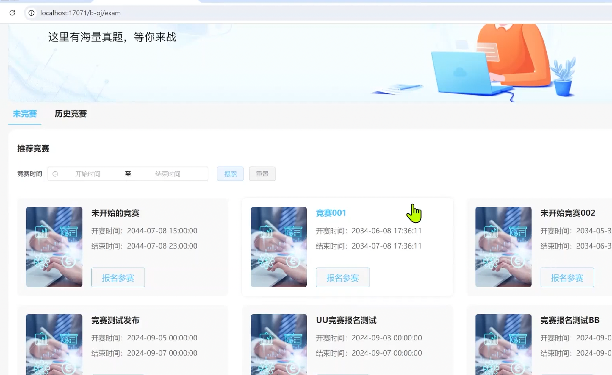 “C端只用显示竞赛标题、开始时间、结束时间”