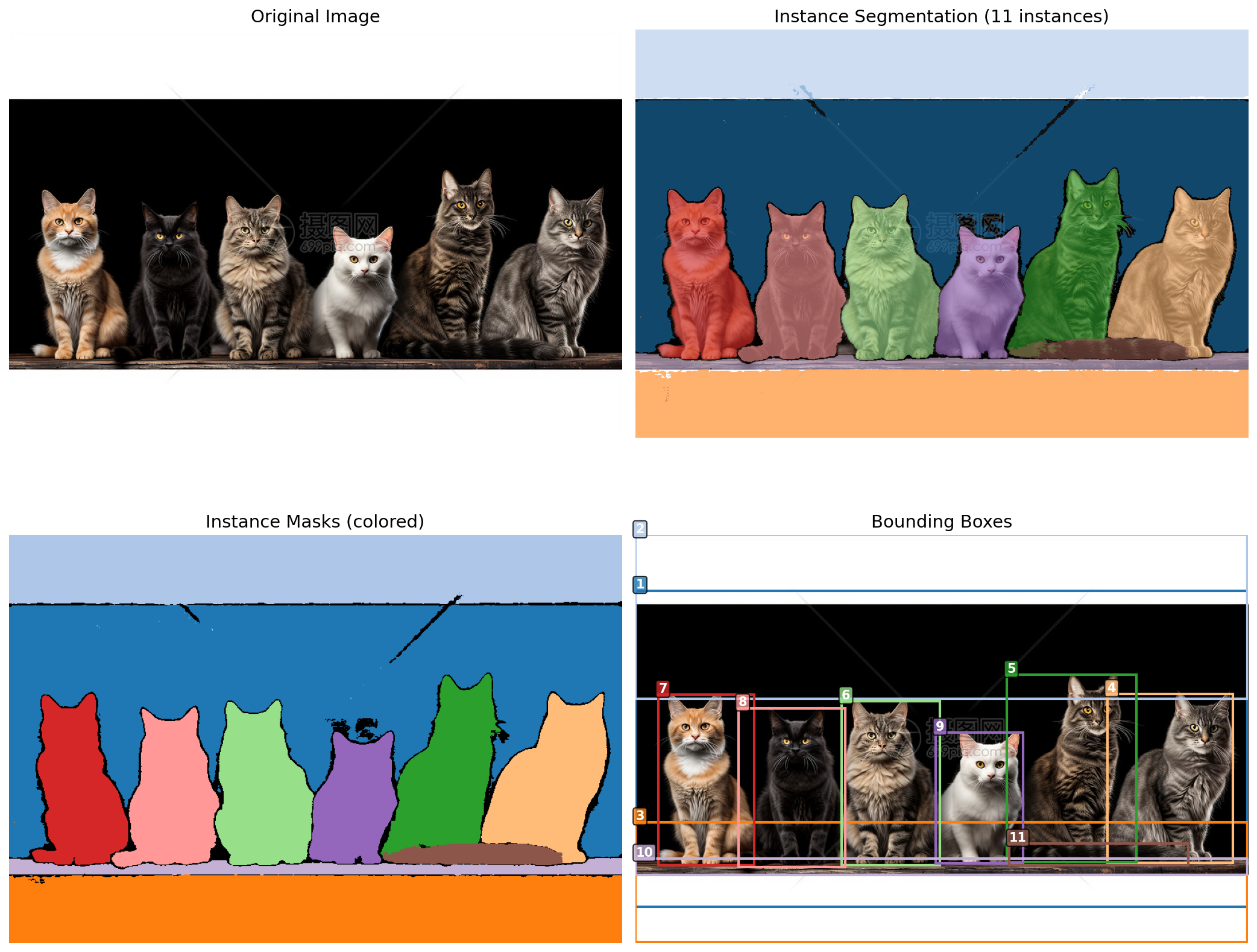 axes[0, 1].set_title(f"Instance Segmentation ({n_instances} instances)", fontsize=14)