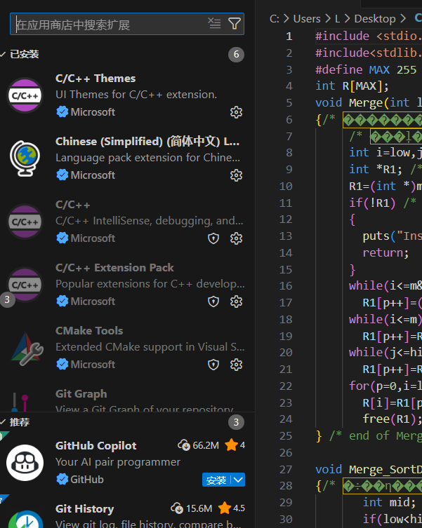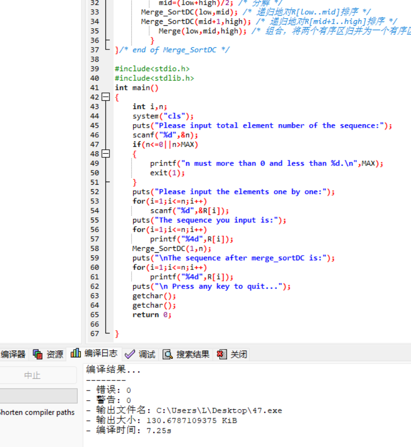 作为编程初学者,接触排序算法时,归并排序绝对是绕不开的重要知识点。它凭借稳定的时间复杂度,在很多场景中都有着不可替代的作用。在老师提供的155个选题中,我选择了47.从而有幸进行这段二路归并排序的 C 语言代码,从最初的运行测试,到排查修复问题,再到用 VS Code 调试优化,最后结合豆包和 B 站教程完成开源上传,整个过程踩了不少坑,也收获满满。今天就把这份完整的实战经验分享给大家。