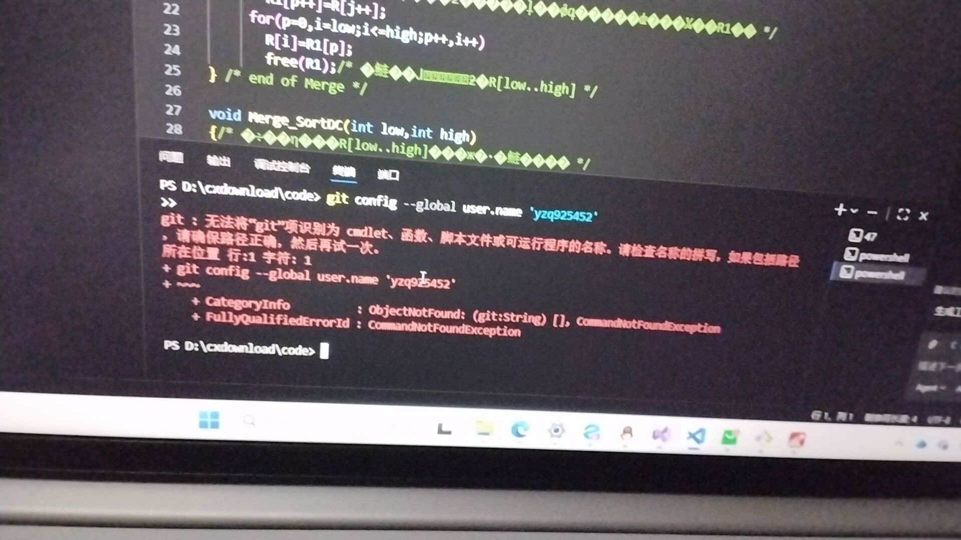 在 VSCode 中配置 Git 路径和用户信息(全局或项目级),要确保复制正确,空格,引号的问题,如果显示错误,要使用Git Bish输入指令来检验那一步错误。明确变更来源后手动合并。