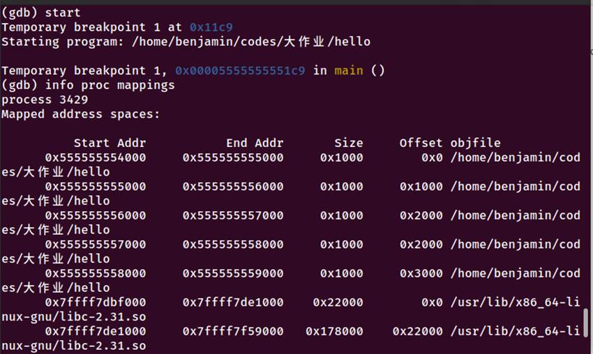 加载执行:shell通过fork()+execve()创建进程,内核加载hello到内存并执行
