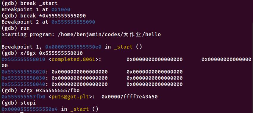 汇编阶段:gcc -c将汇编代码转换为机器码,生成可重定位目标文件hello.o