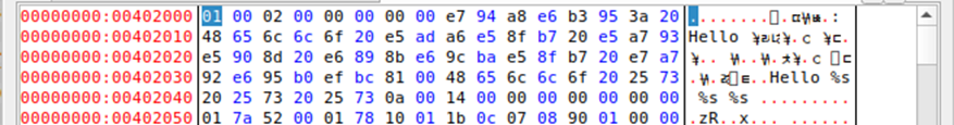 字符串常量通常存储在.rodata段,如图,前者为由UTF-8编码的中文字符串,后者为格式化字符串,用于printf的输出。