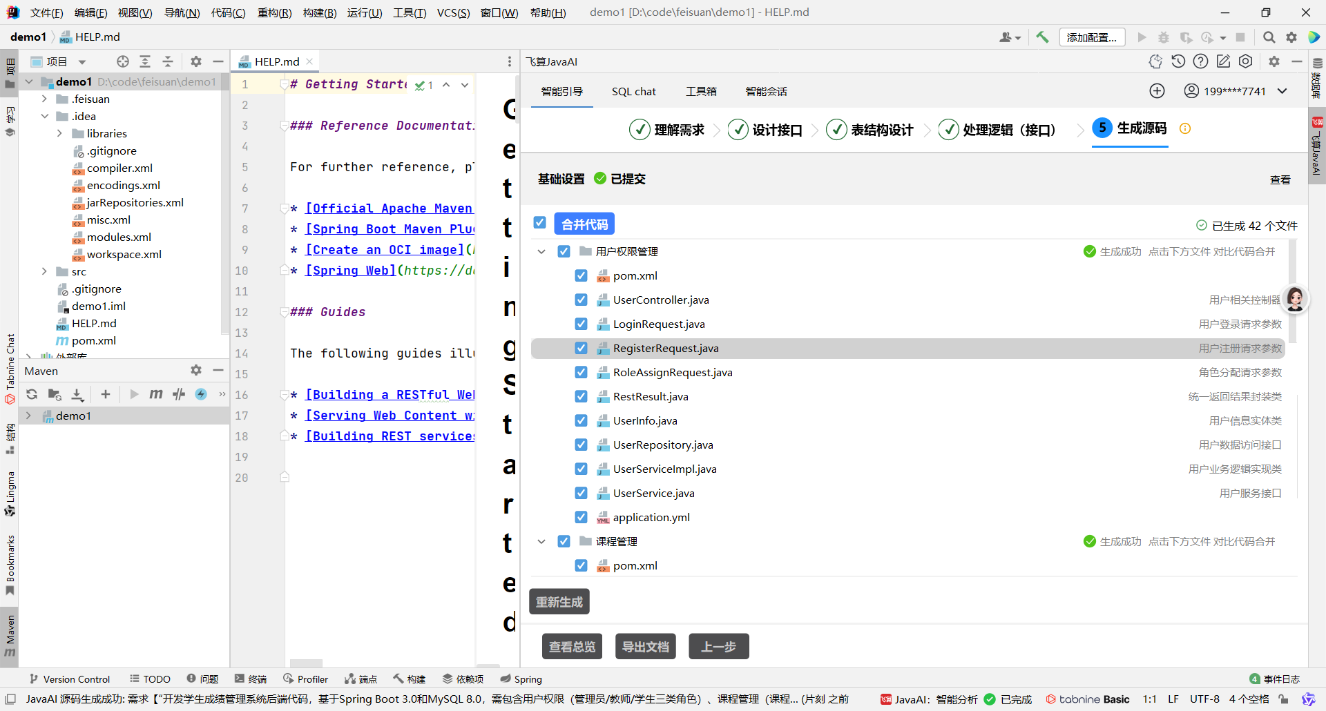 此外,借助飞算 JavaAI 的开发模式,相比传统手动编码,整体开发周期从原本的 30 天缩短至 7 天,且生成的代码符合行业规范,后期维护成本降低 50%,为高校毕业设计、中小型教学管理系统开发提供了高效、低成本的实现路径。