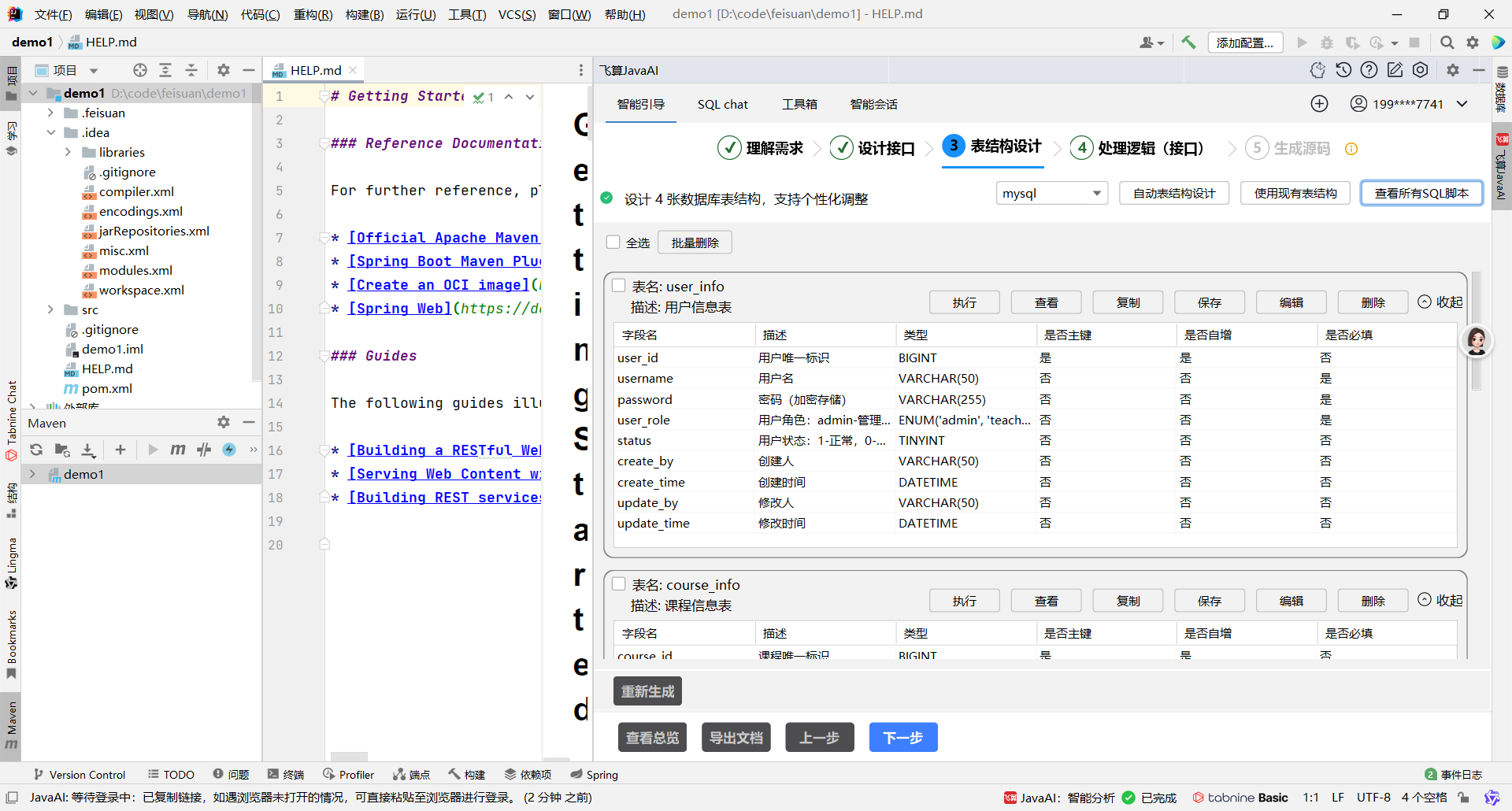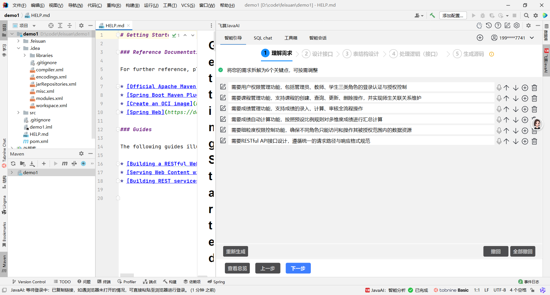 提交提示词后,飞算JavaAI约8秒生成需求拆解报告,核心内容包括: