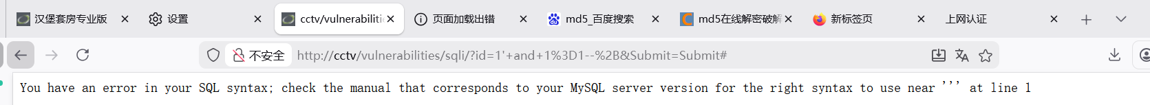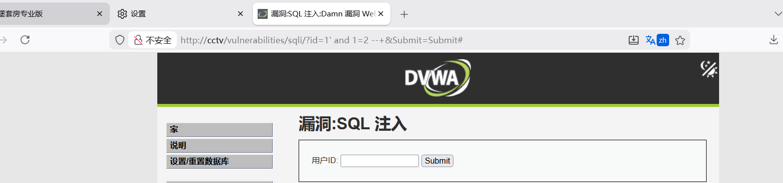 http://cctv/vulnerabilities/sqli/?id=1%27%20and%20sleep(5)%20--+&Submit=Submit#