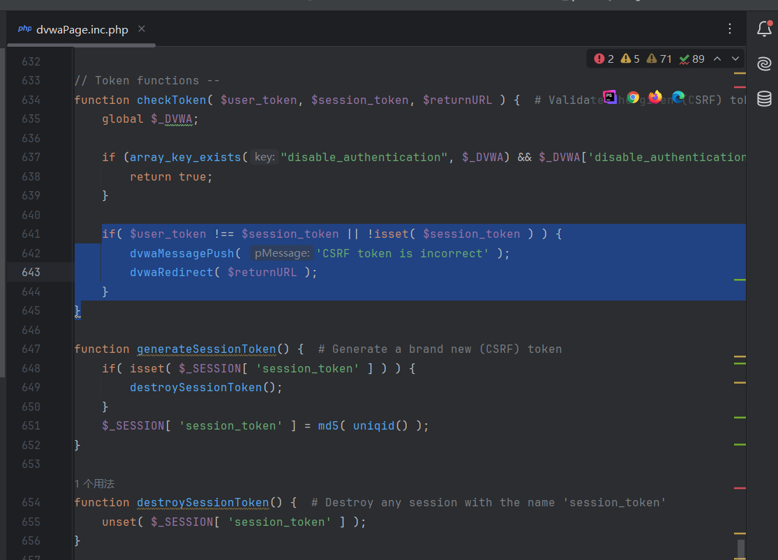 dvwaMessagePush( 'CSRF token is incorrect' );