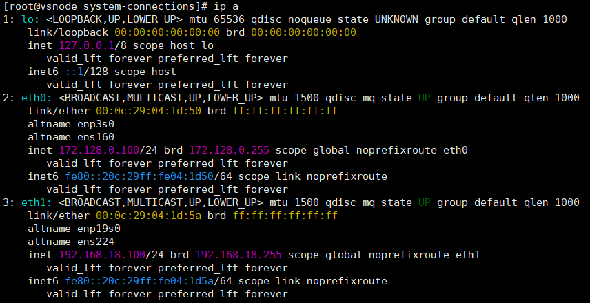 2)然后使用nmcli命令进行IP重启