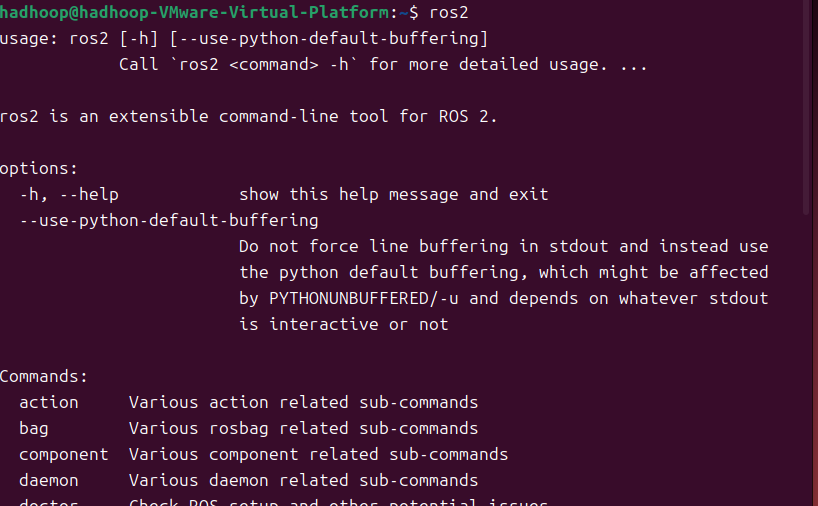 进入 Ubuntu系统,打开终端,先输入ros2 确保你的ros2 配置成功了。