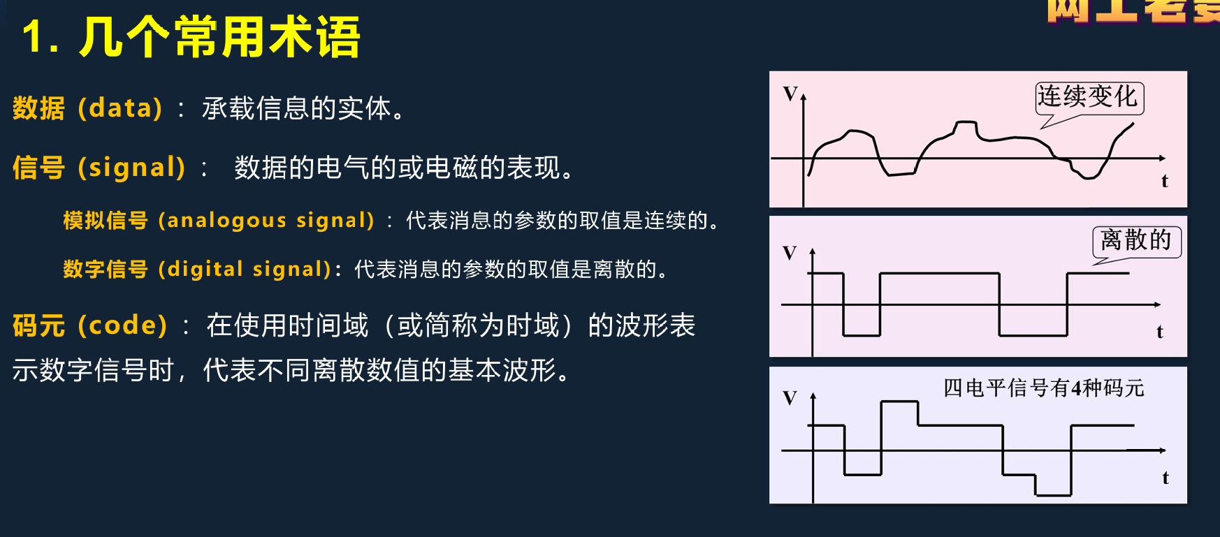 • 要利用信道传输数据,必须将数据转换为能在传输媒体上传送的信号。