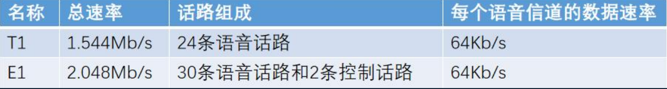 - T1/E1:北美 T1(1.544Mbps)、欧洲 E1(2.048Mbps)。