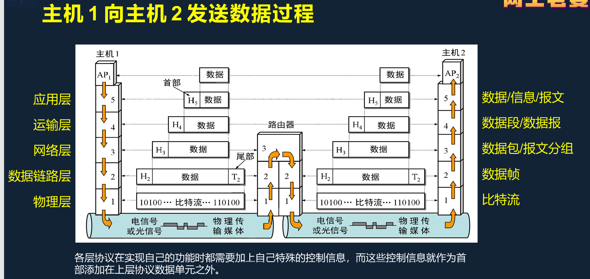 - 封装过程:每层加首部 / 尾部,自上而下打包,物理层转为比特流。
