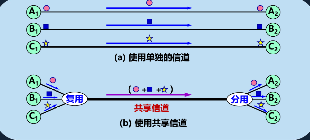 - FDM:频带划分,同时占用;TDM:时隙划分,分时占用;STDM:动态时隙,按需分配;WDM:光的频分复用;CDM:码片正交,同频同时传输。