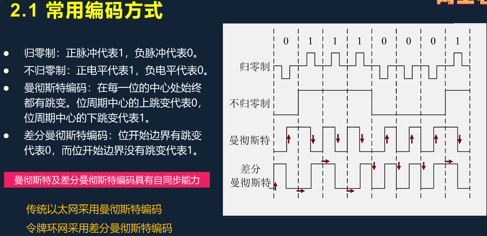 • 数字数据转换成数字信号的过程称为编码(coding),相反为解码,网卡进行