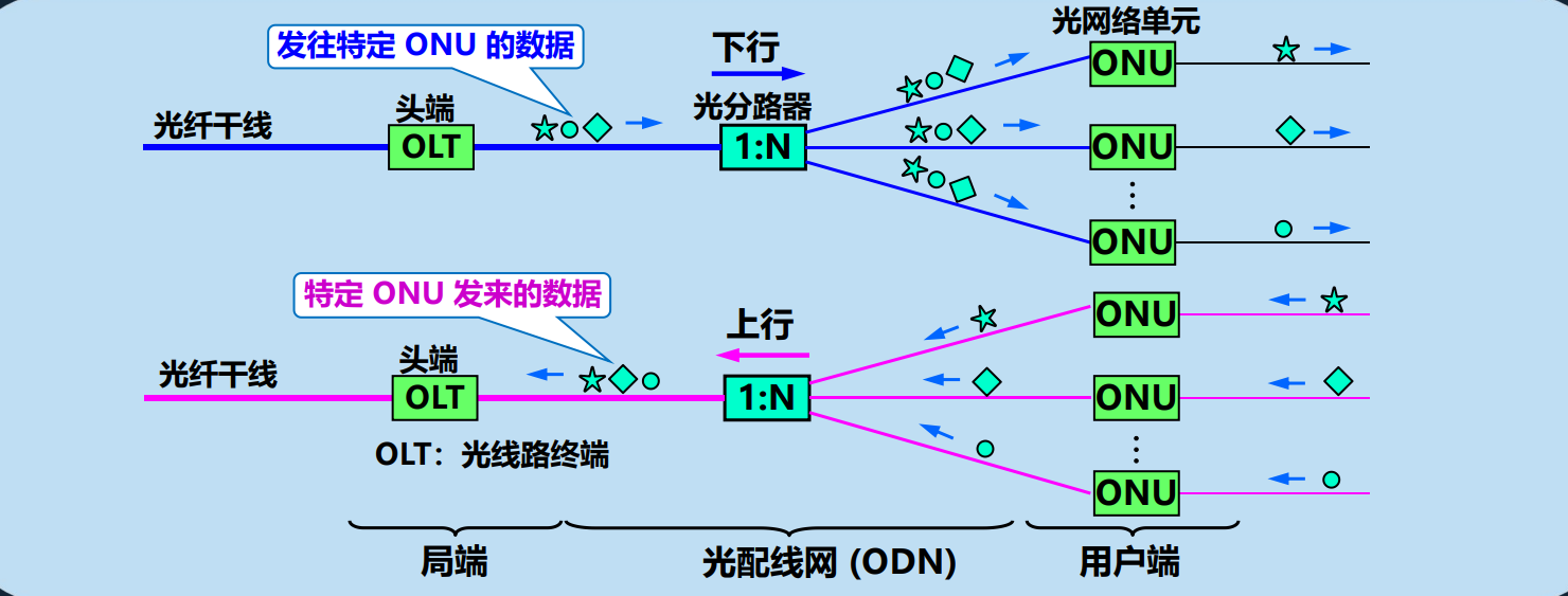 - 上行:波长1310nm,采用TDMA(时分多址)技术